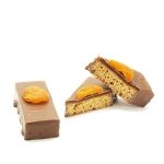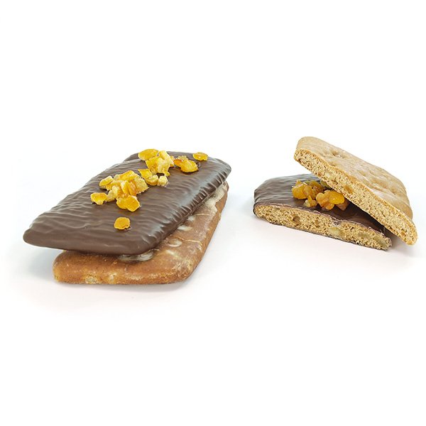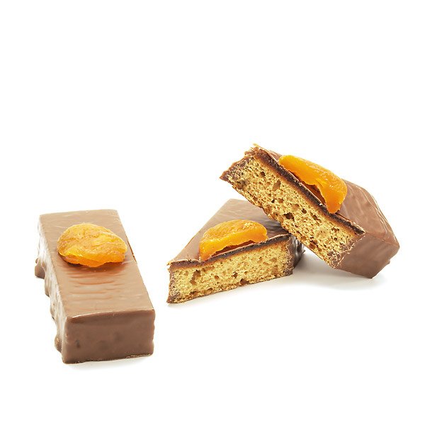 - feinster Honiglebkuchen mit Marillenmarmelade gefüllt, umhüllt von Zartbitterkuvertüre