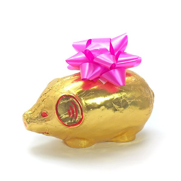 - für´s große Glück im neuen Jahr, das große Schokoschweinderl mit Masche