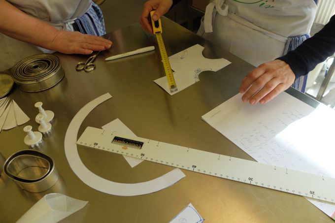 Die erste IDEE, gemeinsamen NENNER finden, PLANUNG, ENTWURF der Torte auf Papier, ÜBERLEGUNGEN zu den Dekorelementen, PROPORTIONEN abklären, Erstellen von VORLAGEN, Erstellen von STÜCKLISTEN, immer wieder neu VERMESSEN, ARBEITSABLÄUFE besprechen & festlegen, MATERIALIEN vorbereiten, erste ÜBUNGEN, VORAUSPLANEN, Beginn der PRODUKTION, TEAMWORK, GEDULD! All dies, ist zu berücksichtigen, wenn ein Projekt, wie wir dies am 2. und 3. April gemeinsam begonnen haben, erfolgreich anlaufen soll. Prinzipiell, ist vieles davon auch im Arbeitsalltag eines Zuckerbäckers (Konditors) von enormer Wichtigkeit. Leider wird dieses Können oftmals nicht mehr richtig vermittelt oder komplett unterschätzt!
