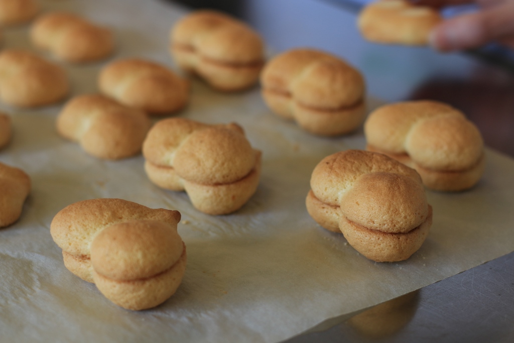 warum Hülsenmasse? Weil früher und teilweise auch noch heute, der Kern des Bisquites, als Platz für die Füllung, ausgekratzt wurde und somit eine Art Hülse entsteht
