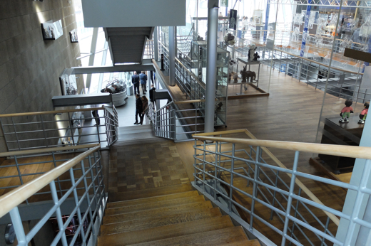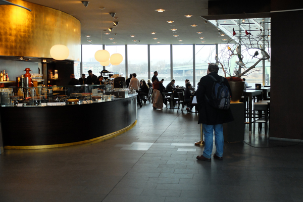 In der großen Austellungshalle, die über 2 Stockwerke geht und gleichzeitig einen fantastischen Ausblick auf den Rhein und seine beiden Ufern ermöglicht, stehen nicht nur Maschinen und Formen aus längst vergangenen Zeiten, sondern auch eine komplette Produktionsstraße zur Schokoladenherstellung. Leider ist diese aufgrund der Luftemissionsauflagen nicht in Betrieb. Sehr wohl in Betrieb, ist aber die vollautomatisierte Herstellungslinie für Schokonaps!