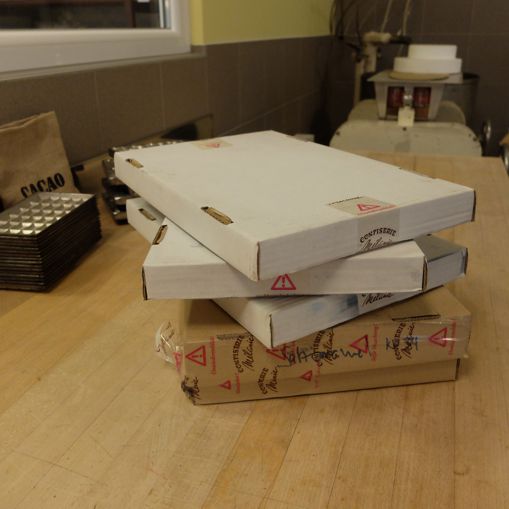 Gehen wir doch einmal chronologisch vor. In Neu-Ulm, hat Herr Alfred Pfersich, ein echter Insider in Sachen Schokolade (= Kuvertüre), seinen Firmensitz. Anfang Februar 2015, hat mich, Herr Pfersich freundlicher Weise eingeladen, mit ihm die Eröffnung der neuen Callebaut Schokoladenakademie in Köln zu besuchen. Bei dieser unglaublich schönen Eröffnungsfeier (für einen Bericht diesbezüglich, bitte hier klicken), hat mir Herr Pfersich, Frau Sabine Dubenkropp vorgestellt. Eine Kollegin, die damals gerade in der Vorbereitung zum Finale des „German Chocolat Master“ war, das sie übrigens auch gewonnen hat. Sabine, führt wiederum mit ihrem Mann Guido, eine traditionsreiche Confiserie (bei Mélanie) in Berlin Charlottenburg. Und weil es im Moment für mich sehr schwierig ist, einen Kursbetrieb zu gestalten und paralell dazu in den gleichen Räumlichkeiten von Backen mit Dir in Langenzersdorf bei Wien zu produzieren, hat mir Sabine, einen Karton, mit einer Auswahl Ihrer handgemachten und feinen Schokoladen Trüffelkugeln zugesendet.