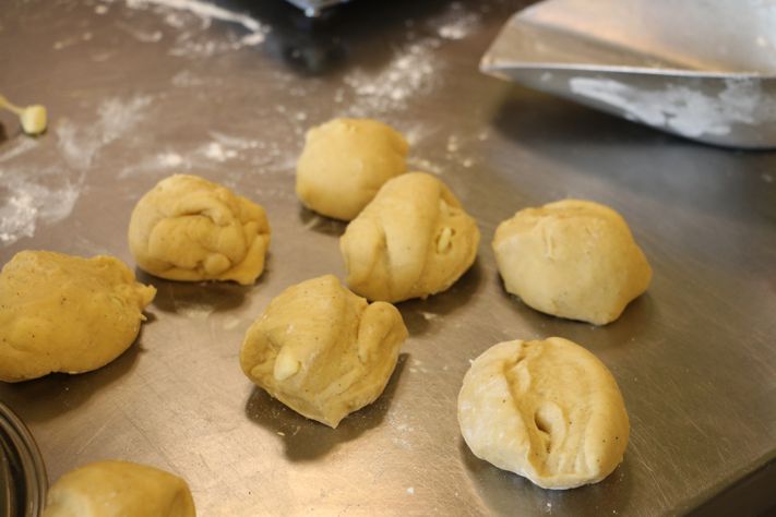 Den Pinzenteig haben wir auch noch ein bisschen mit „mehr“ Butter und „mehr“ Dotter aufgewertet und somit schon fast zum französischen Briocheteig hochdeklariert.