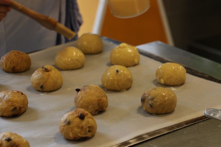 Pinzenteig,  ist ein Hefeteig, der mit einem Dampfl (Vorteig) hergestellt wird, damit der Teig nicht nur schön porig sondern auch gärstabil bleibt. Es ist ein Teig der leicht warm hergeführt wird und daher während des Verarbeitungsprozesses nie wirklich kalt werden sollte. Ich persönlich versuche immer alles Zutaten inklusive Mehl, leicht anzuwärmen, um so dem Teig von Beginn an die richtige Wohlfühl -Temperatur zu ermöglichen. Jeder der Osterpinzen kennt und mag, weiß das die Optik eigentlich das besondere an der Pinze ist. Sprich der gegarte Teig, wird kurz bevor die Pinzen in den Ofen geschoben werden, dreifach eingeschnitten.