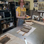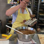 - Und ich, beim Abspachteln der alten Metall-Schokoladenformen