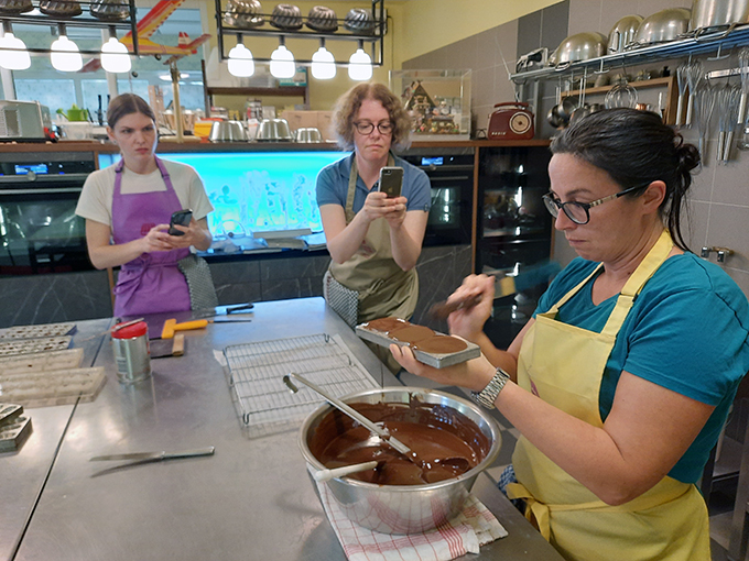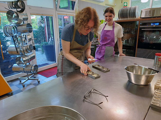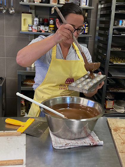 - Und ich, beim Abspachteln der alten Metall-Schokoladenformen