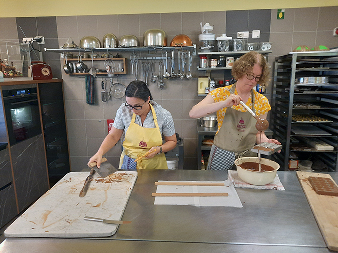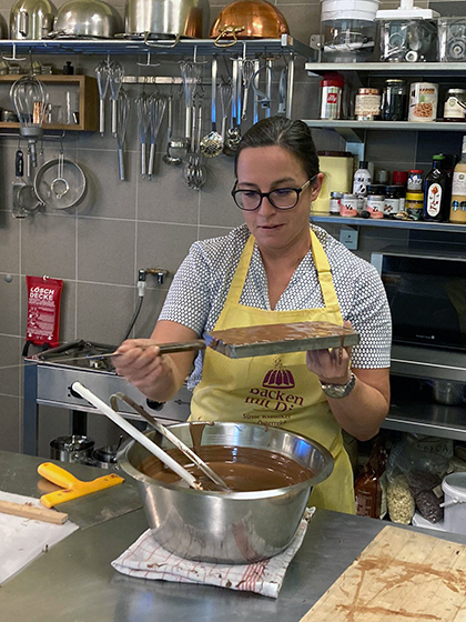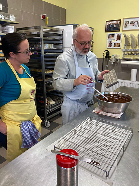 Heute berichte ich Ihnen, in zwei Beiträgen, über ein besonders wundervolles Schokoladen- bzw. Pralinenseminar mit Anna aus Schweden – nicht das erste Mal bei mir – sowie Daniela und ihrem Lehrmädchen Marion. Alle Drei selbst ganz tief mit der Verarbeitung von Schokolade bzw. auch von Lebkuchen verwurzelt.