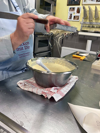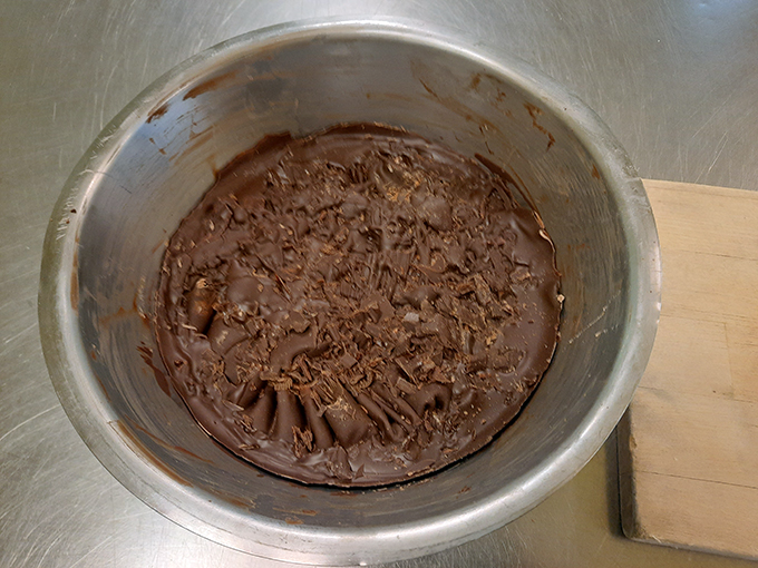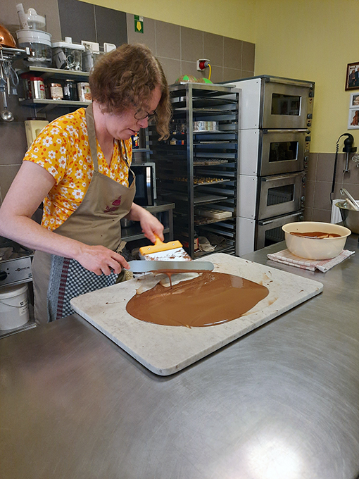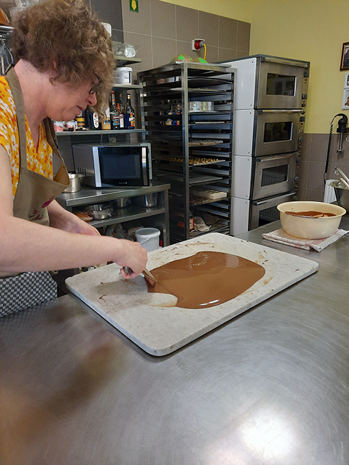 - die vorerst überflüssige Schokolade wird abgestrichen