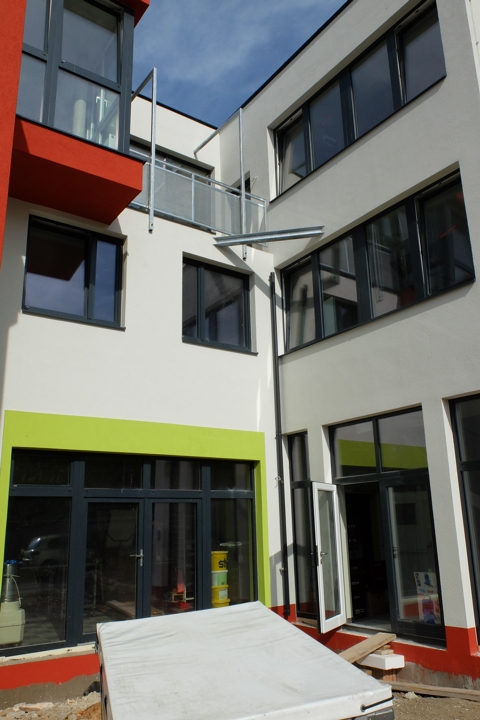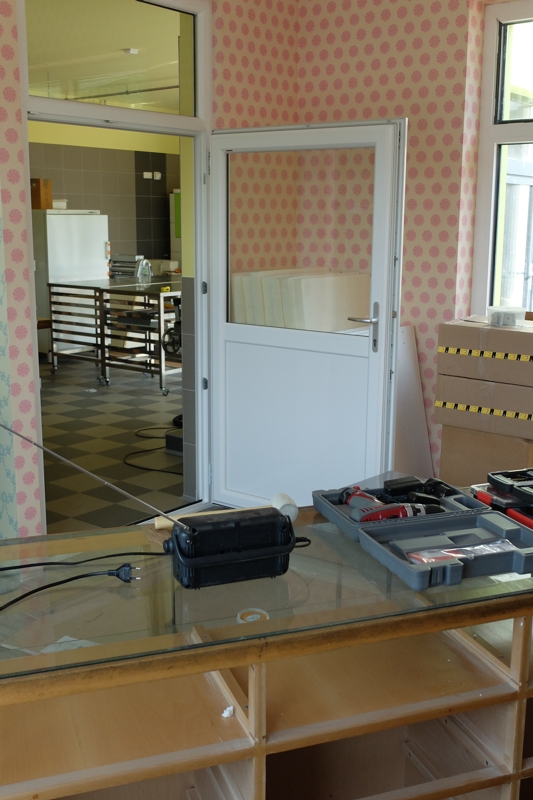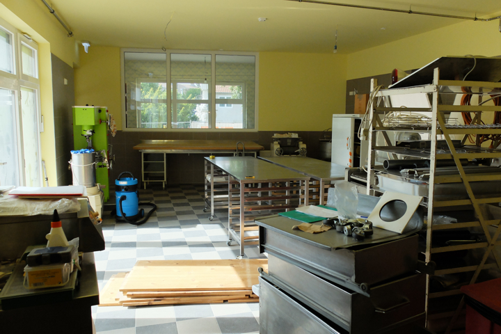 Ja, wohin der Weg, BackenMitDir und mich führen wird, wird sich in den nächsten Monaten zeigen. Fest steht und daher mein neuester Bericht heute, wo wir jetzt – nach dem unglaublich heißen und extremen Sommer – sind: „Sehr weit aber noch nicht ganz startbereit!“ Das Gebäude ansich, ist im Prinzip fertig. Auch die Fliesenarbeiten sind höchst erfolgreich und recht ansehnlich, von der Firma Johann Friedl GmbH, abgeschlossen worden. Natürlich fehlt es noch teilweise an den richtigen Beleuchtungskörpern, die Sanitäranlagen werden demnächst eingebaut und auch warmes Wasser, sollte in Kürze vor allem beim Reinigen unterstützend vorhanden sein. Im Außenbereich ist allerdings noch ein gutes Stückerl Arbeit zu erledigen.