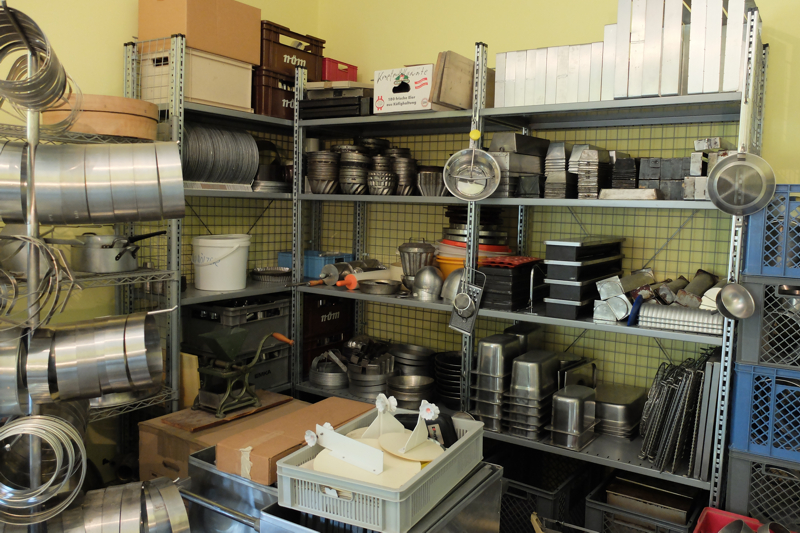 Die angemieteten Lager sind geräumt, was soviel heißen will, dass nun alles im geordneten Chaos in den diversen Räumen „aufgeteilt“ steht. Und genau das ist des Rätsels – „Wann beginnt der Kurs- und Seminarbetrieb und wann öffnet der Laden mit dem Backzubehörshop“ – Lösung! Dann, wenn alles richtig gut durchgereinigt wurde, instand gesezt wurde und die diversen Wartungsarbeiten erledigt sind und einige Regale (z.B.: für meine riesige, ca. 6.000 Stück große Schokoladenformensammlung) und spezielle Konstruktionen (z.B.: Auslagen) angefertigt und eingebaut sind.