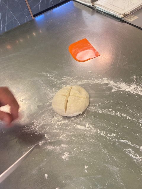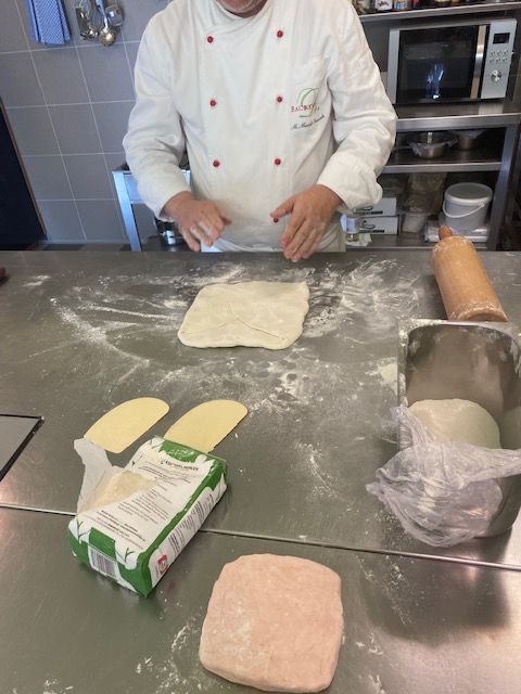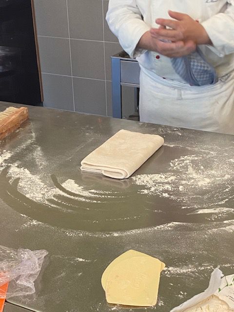 Letztendlich haben wir uns dann zu Dritt, am Samstag, den 16. Oktober 2021 bei mir in der Backstube getroffen. Eh ein einfaches Seminar, werden jetzt vielleicht viele von Ihnen meinen. Weil eine Art Blätterteig, naja! Dazu schreibe ich Ihnen jetzt etwas: Blätterteig, muss man mit ganz viel Gefühl, Können und Fachwissen herstellen (herführen). Blätterteig braucht viel Muße, Ruhe und Einfühlungsvermögen. Aber genau deswegen, macht ja kaum noch jemand seinen Blätterteig selbst!!