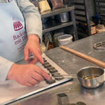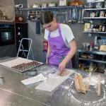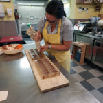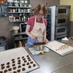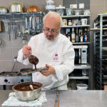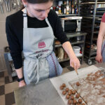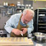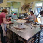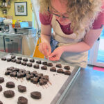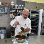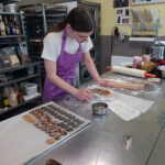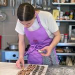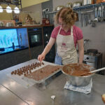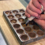- Zurück zum Thema Praline. Daniela beim Füllen mit weichem temperiertem Nougat