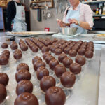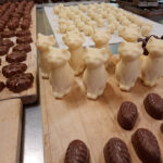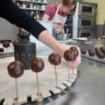 - Daniela beginnt bereits mit dem Deckeln unserer gefüllten Hohlkörperpralinen