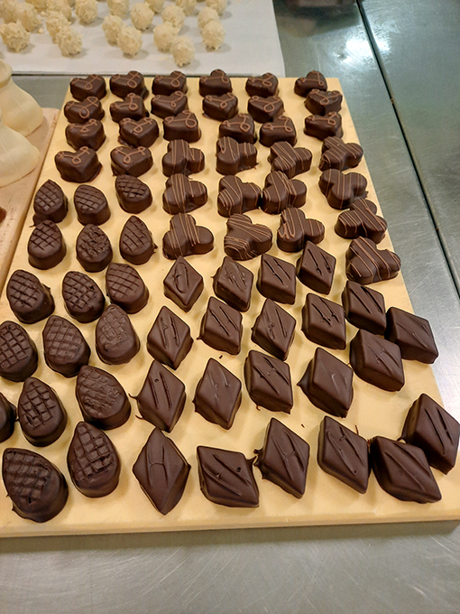 - Vom gefüllten Schokoladen Taler, zu den Nougatmeeresfrüchten, bis hin zu all unseren gefüllten Pralinen