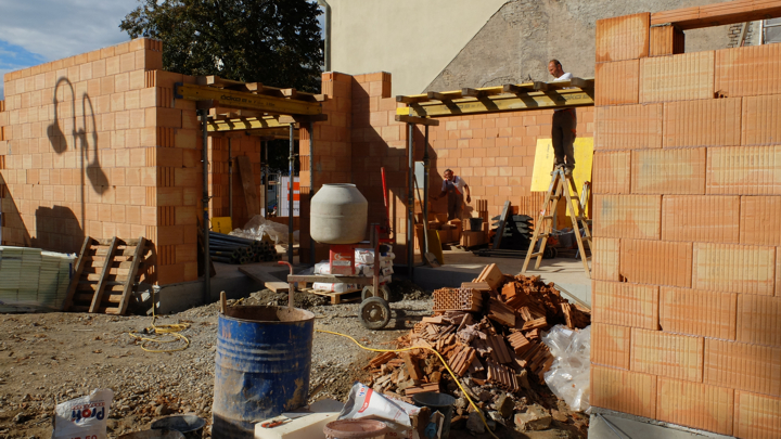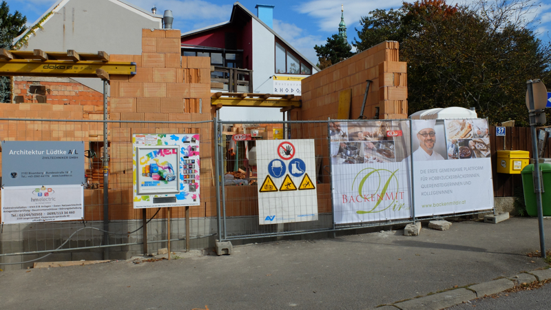 Nach meinem täglichen Baustellenbesuch, habe ich heute wieder für Sie, meine lieben Damen und Herren, sowie für alle backbegeisterte Teenies (Mädels & Jungs) und im speziellen allen Freunden der süßen Kunst, neue Fotos mitgebracht. Es hat sich wirklich schon einiges getan! Die Backstube im EG und der kleine Zubehör – Shop, das Geschirrlager mit der Spüle, sowie das Stiegenhaus in dem es einmal zu der Umkleide, den Toiletten und dem kleinen Patisserieraum in das Obergeschoß gehen wird, sind schon gut erkennbar. Nächste Woche wird dann die Decke aufgesetzt bzw. betoniert. An dieser Stelle möchte ich mich vorerst einmal bei folgenden Personen für den momentanen reibungslosen und guten Ablauf auf der Baustelle bedanken: Herrn Architekt Dipl.-Ing. Lüdtke (Planung und Bauaufsicht), Herrn Ing. Rauch (Projektleiter Leyer + Graf), ein besonderes Dankeschön für Herrn Brand (Polier) und sein Baustellenteam (Leyer + Graf), Herrn Haiderer (hmelectric), Herrn Fasching (Installateur, Korneuburg), der auch demnächst in das Baugeschehen eingreifen wird und nicht direkt an der Baustelle beteiligt, sehr wohl aber an dem grafischen Auftritt (inklusive Webdesign) von Backen mit Dir, Frau Ekaterina Lengerova (livingcreation)!