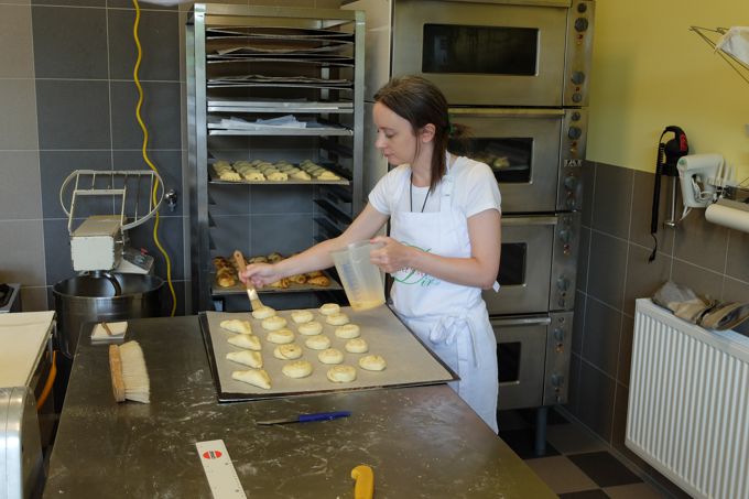 2 Wochen, vor unserem Workshop, besuchte mich Vivien bei mir in der Backschule am Fuße des Bisamberg, zwischen Wien und Korneuburg und da zufällig einer meiner lieben Kolleginnen anwesend war, Eva Hansalik, selbst Produktionsleiterin bei Altmann & Kühne, kamen auch gleich noch ein paar Tips von ihr, zu weiteren interessanten Themen hinzu und damit hatten wir auch schon ein extremes und enormes Pensum für unseren letztendlich 2 1/2 Tages Workshop, vor uns. Danke hiefür, liebe Eva, an dieser Stelle – mehr im Namen von Vivien, als von mir, wenn Du verstehst, wie ich das meine! Nein Spaß beiseite. Ein Workshop zu zweit und besonders mit mir (schreib ich mal ganz frech), ist sicherlich das Beste, um Neues zu lernen bzw. altes Fachwissen wieder aufzufrischen. Aber durch das oftmals besonders dichte Programm, die vielen Fachfragen die man damit ableiten und mir den ganzen Tag über stellen kann, sowie das stundenlange intensive Werken miteinander in der Backstube, bedeutet so ein persönlicher Workshop auch, das man am Tagesende und der endet bitte erst nach dem gemeinsamen Reinigen der Arbeitsgeräte, wirklich richtig Müde, aber auch sehr zufrieden, ist!